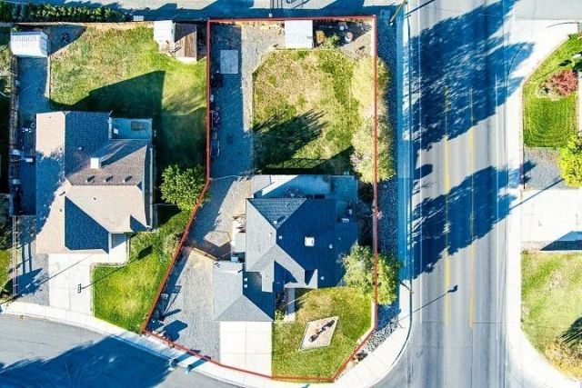 Multi-generational home featuring two primary suites on the main level! The spacious kitchen offers hardwood floors, granite countertops, a convenient coffee bar, and newer stainless steel appliances. Enjoy the warmth of a double-sided fireplace and seamless indoor-outdoor living with French doors leading from the kitchen to a flagstone patio and deck. Situated on a generous corner lot with abundant RV parking and space to build a shop. Additional highlights include a new roof and newer Breezair unit.