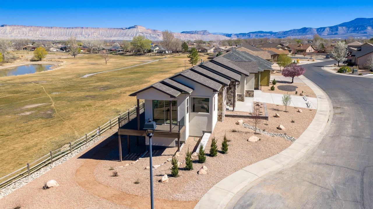 Brand new construction backing directly to the beautiful Chipeta Golf Course with breathtaking views of Mt Garfield and the iconic Colorado National Monument. The thoughtfully designed Ranch-style with walk-out basement home features a fully finished walk-out lower level and sits on a spacious 0.23 acre lot, with full professional landscaping in both the front and back. Enjoy incredible scenery from the desk overlooking the golf course - perfect for morning coffee or evening relaxation as golfers pass by. The well-planned main level includes a beautiful primary suite with double vanity, large walk-in shower and walk-in closet, that includes convenient washer/dryer combo. A generous linen closet adds even more storage in the bath area. The lower level offers two additional bedrooms, a full bath, and an extra-large family room with walk-out access to the patio - an ideal space for entertaining or unwinding while taking in the golf course views. Two separate storage areas provide plenty of room for all those extra items, an additional laundry/mud room adds everyday convenience. The 33' deep 2-car garage features epoxy floors plus a golf cart garage. Additional highlights include tankless hot water heater and a smart, functional floor plan designed for both comfort and lifestyle. A rare opportunity to enjoy brand-new construction with unbeatable golf course views in one of Grand Junction's most scenic settings.