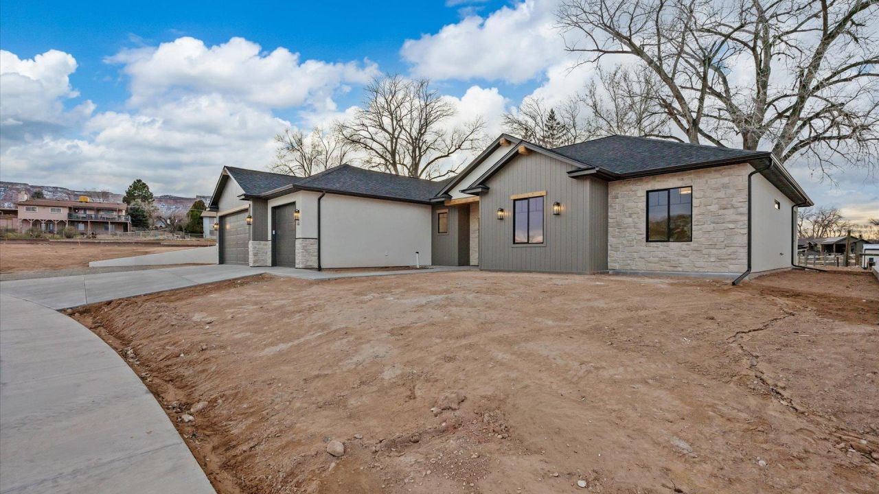 Discover this beautiful new construction home in Monument Ridge Estates, located in the scenic Redlands area of Grand Junction. This traditional craftsman ranch-style home features a well designed split floor plan and an open concept design, perfect for comfortable living and entertaining. With 4 bedrooms and 3 bathrooms, there's plenty of space for everyone. The primary suite offers a large walk-in closet and a luxurious 5-piece bathroom, creating a perfect retreat after a long day. Throughout the home, you'll find beautiful quartz countertops, white-wash oak cabinetry, and a sleek stainless steel appliance package in the kitchen, complete with a convenient beverage fridge. The great room is accented by beautiful stained beams, horizontal shiplap above the electric fireplace, and two-tone paint, adding warmth and style to the living space. Exterior highlights include a 3-car garage with RV parking on the south side, two covered patios ideal for enjoying Colorado's beautiful weather, and a gorgeous blend of stone, stucco and shiplap on the facade. Black windows, a fully fenced yard, and front exterior wiring for holiday lights make this property both functional and festive. Contact the listing agent for details on buyer's options regarding back perimeter fencing. Enjoy breathtaking views of the Colorado National Monument and the Grand Mesa from your new home. This property is the perfect example of traditional craftsman style combined with scenic surroundings. Don't miss this opportunity to make this beautiful new home yours! *Estimated completion March 2026*