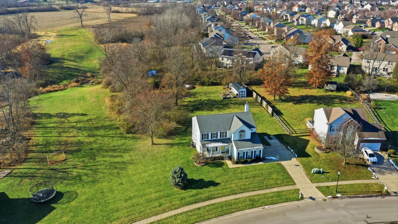 Entertain & Relax: this 1.27 Acres offers areas to explore & 3,858 square feet deal including 4 Bedrooms, 2.5 Baths, a Finished Basement with theater area, recreation, bar, gym, newer furnace & AC! Dont miss the meandering creek, play space, custom playhouse in Liberty Township. Enjoy morning coffee on the covered front porch, love the quality throughout with premium plank flooring leading from the 2 story entry to the 9 high ceilings in the formal Dining & this 20x17 Family Room. Get cozy next to the wood burning fireplace, enjoy views of the yard with tree lined privacy. The Kitchen offers plenty of storage, 42 high cabinets with tile backsplash, a spacious island, quality stainless appliances, vented range, under counter lighting, large pantry, breakfast bar & spacious 9 high ceiling. Enjoy the Breakfast/Lounge with vaulted ceiling. Enjoy the outdoor dinette, deck, fenced pet area, space to play and 1+ acre to explore. Notice the mud room/laundry, remodeled power room & oversized heated- 2 car garage with workshop(a must see). Upstairs, your Owner Suite 22 x 15, King Sized furniture, new carpet option, + space for lounge/home office The remodeled luxury bath with soaking tub, elaborate tile with rain fall shower & double sink vanity + an organized walk in closet. 3 Guest Bedrooms have new plush carpeting + access to a Bathroom.. Fresh Paint! Head to the finished basement 36x14 game area + wet bar & 17x12 home theater area with 100 LED movie screen. Dont miss the Exercise room, storage rooms & High Efficiency Furnace & AC-2023 + radon mitigation, Roof 2011(30year), generator hookup & security. Outside, play space, hammock chill zone + areas to kick the ball a 24x10 shed offers flexibility + tractor storage. Enjoy the raised planters/garden for organic growing, meandering paths & creek + exploration areas in this 1 of a kind custom play shed - a must see. ... Inquire. Quick access to I-75 Cincinnati or Dayton! Click Video Tour.